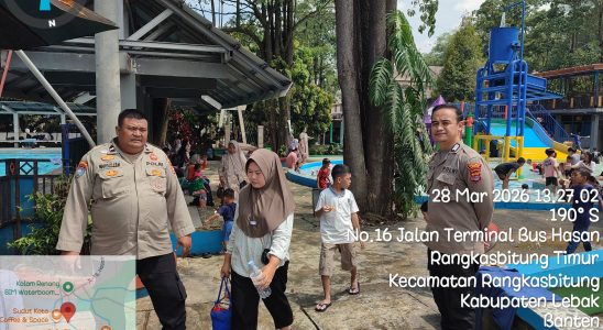 Libur Lebaran,Anggota Piket Polsek Rangkasbitung Polres Lebak Patroli Dialogis di Tempat Wisata Kolam Renang